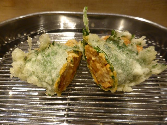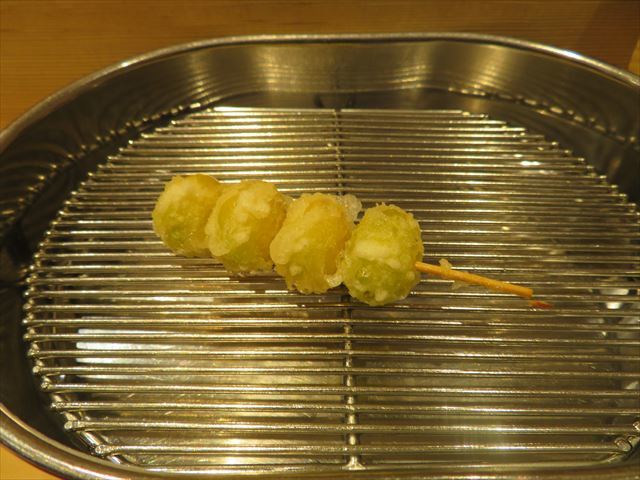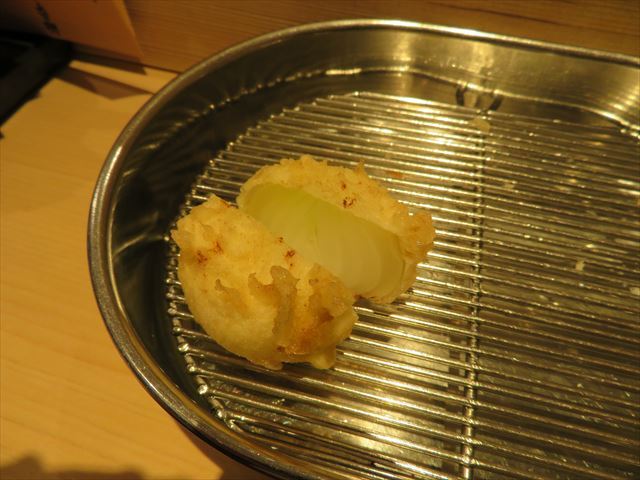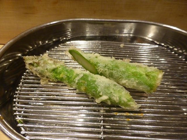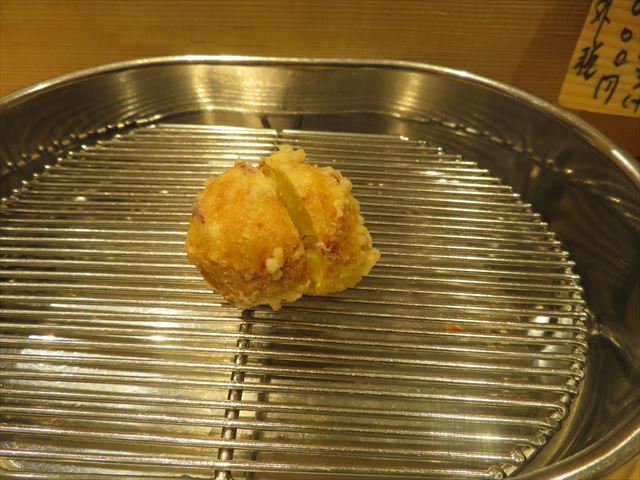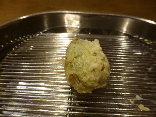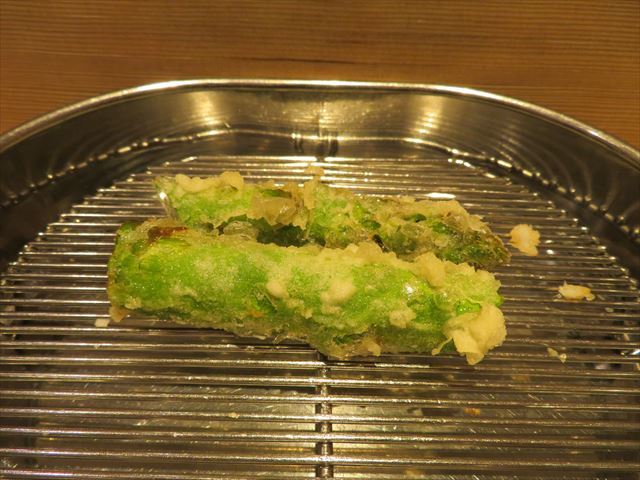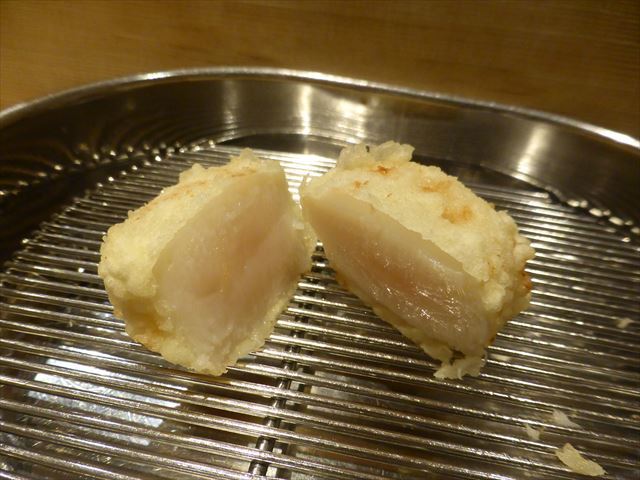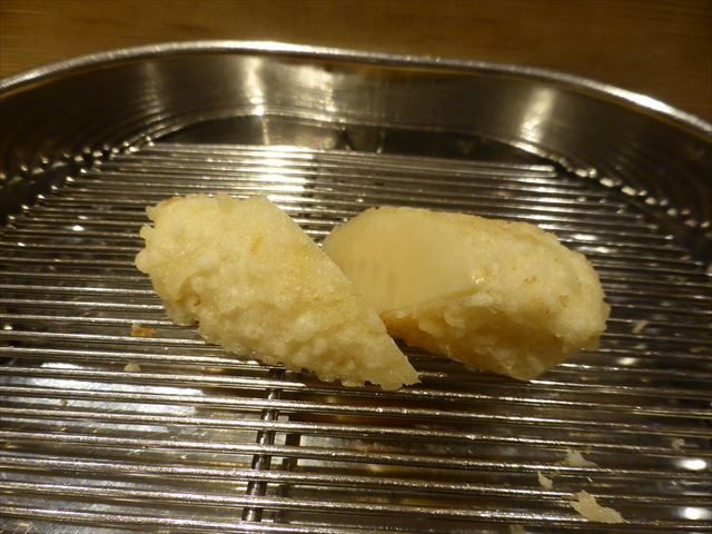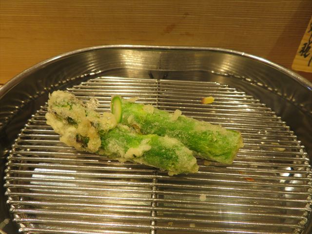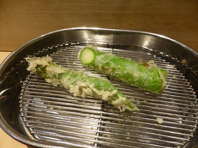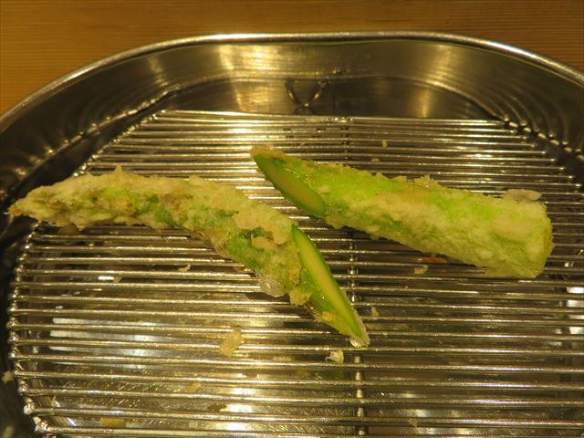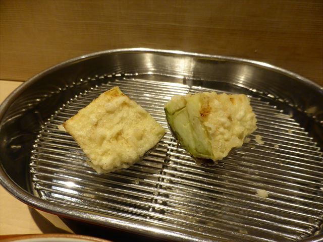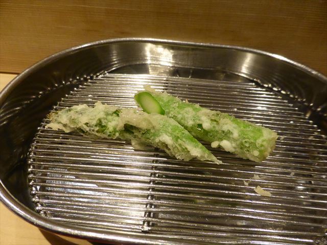:天麩羅カウンターで定番だが、今回の物は特に良い揚げ具合。