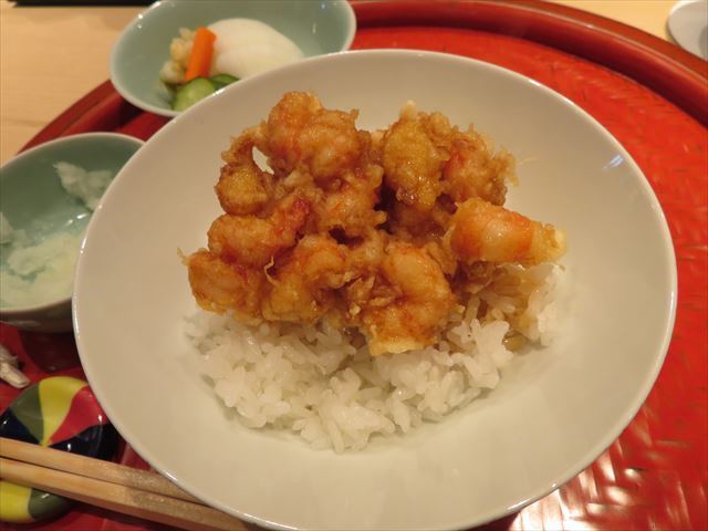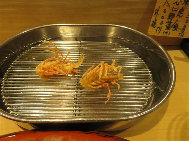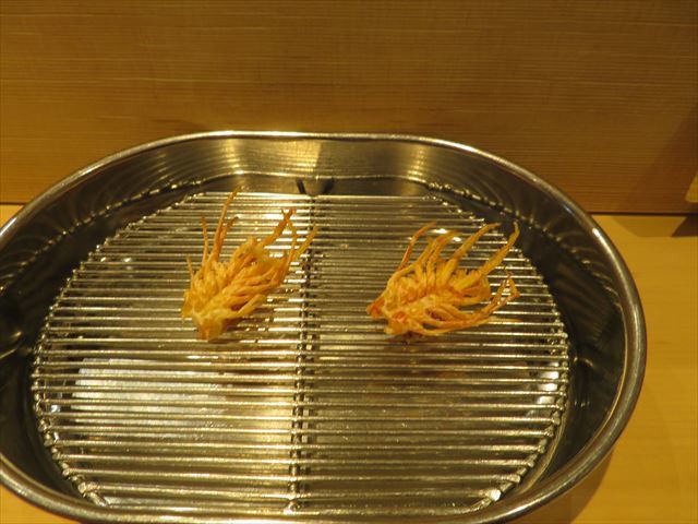 □ 車海老 :普通、2匹目の方を強く揚げる場合が多いが、今回は逆だった。