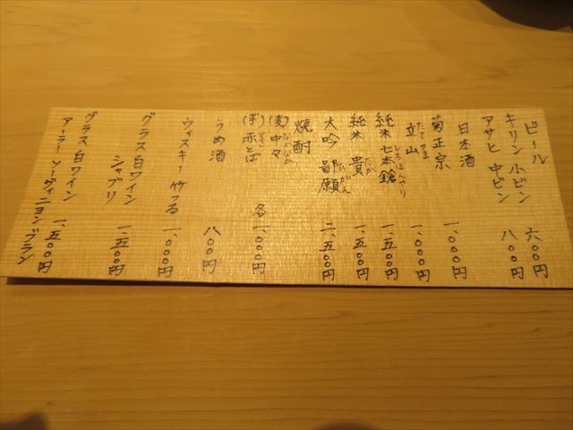 いつもNo.2 1万円(税別)を注文。連れは瓶ビール(小)。