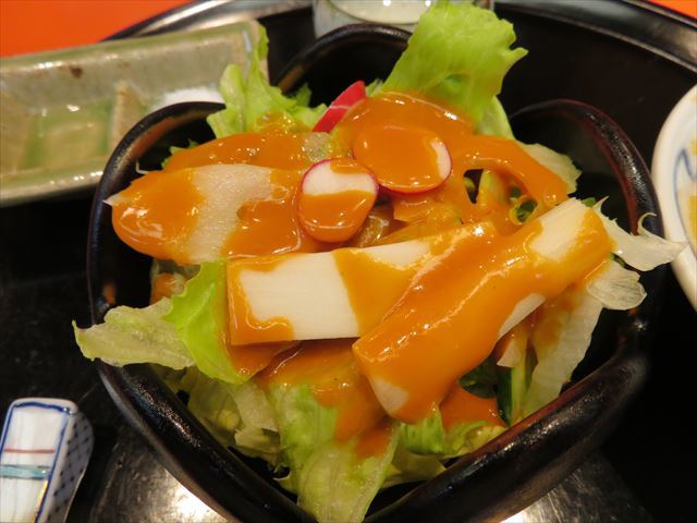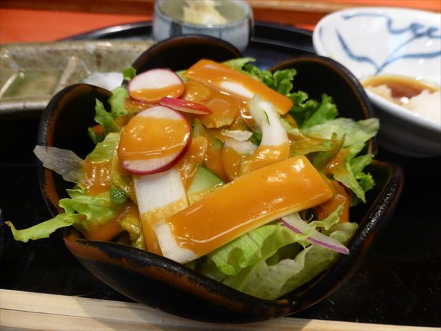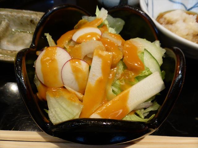 △(□) サラダ;タレは胡麻・トマトに天汁・セロリ・生姜などを加えているとの事。