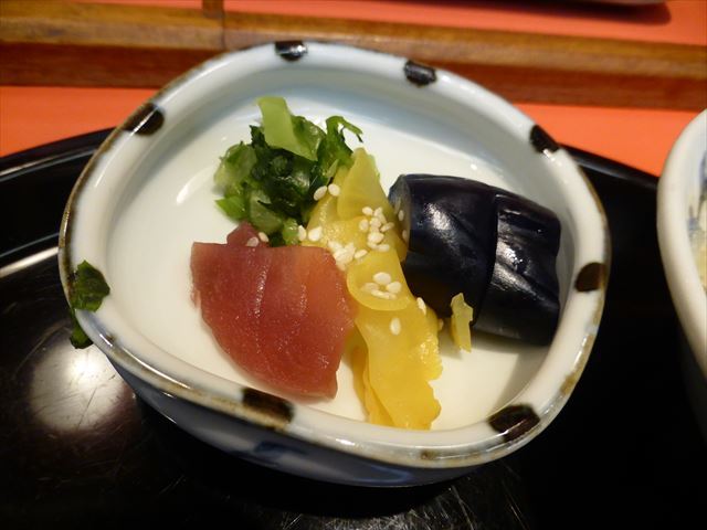 香の物を持って来た仲居が箸置きにぶつかってかなり乱れたのに、何も言わずに知らん振りしてそのまま放置したのは、非常に残念だった(「仲居のレヴェルが良い」という好感を持っていただけに、悲しかった)。