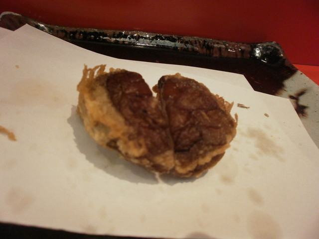 △(□) 海老:かなりシッカリ揚げて有る。一寸熱通り過ぎ。
