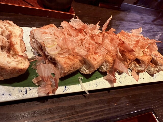 甘辛のネギ味噌がアクセントになっていて、これまた絶品!フワフワの鰹節がたまらん〜!