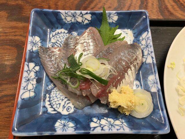 アジ刺身は肉厚、これも新鮮で旨い~☆ お姉さんに聞いたら、朝どれとのことでした。