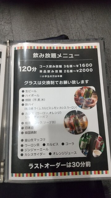 コースをお願いして飲み放題2時間、4000円という値段以上のコースの内容に圧巻!キムチもサムギョプサルで焼くとこんなにも美味しいのかと再発見!店員さんも素晴らしい接客で本当に心地よい時間を過ごせました。