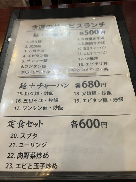 エビ玉子炒め定食チャーハン付き600円