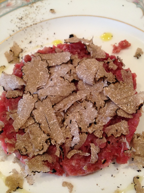 黒トリュフの下には福岡古野さんの赤牛のタルタル 2015-7