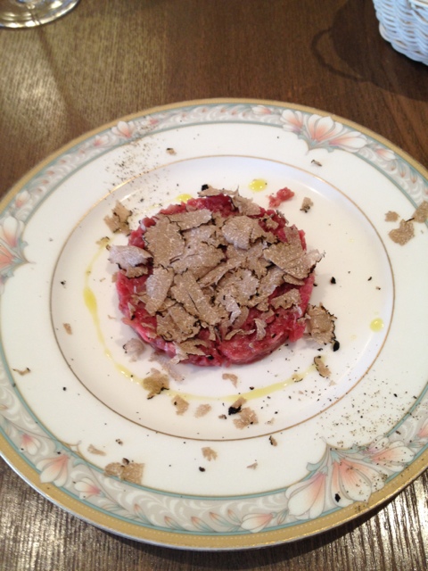 お皿からトリュフの匂いが立ち昇って来ますね。お肉のお味は何時もながらですが、タルタル用なのか熟成が浅いですね。