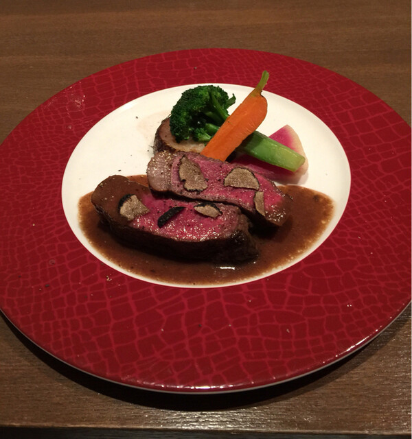 此れはシェフが相当入れ込んでいる赤牛です。綺麗な赤身にトリュフがタップリとかけてあります。