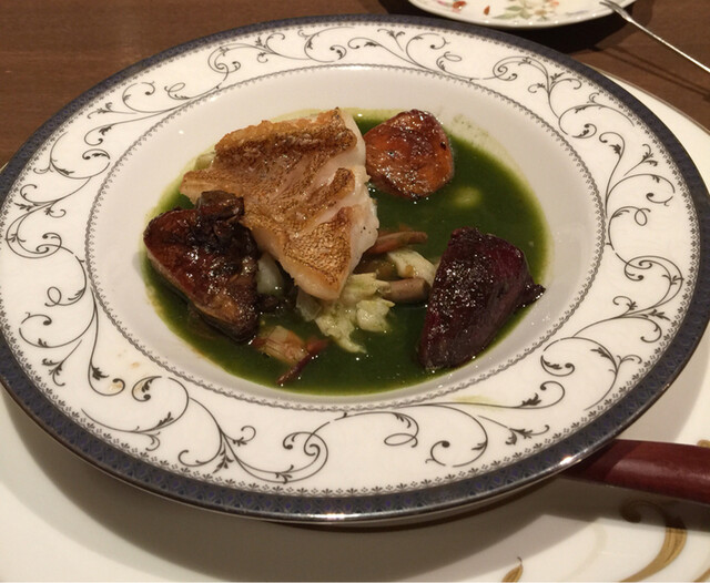 アコウ鯛のポワレは皮目はパリッと身はしっとりと。舌先から繊細な魚の旨味が胃の腑に落ちていく様だ。