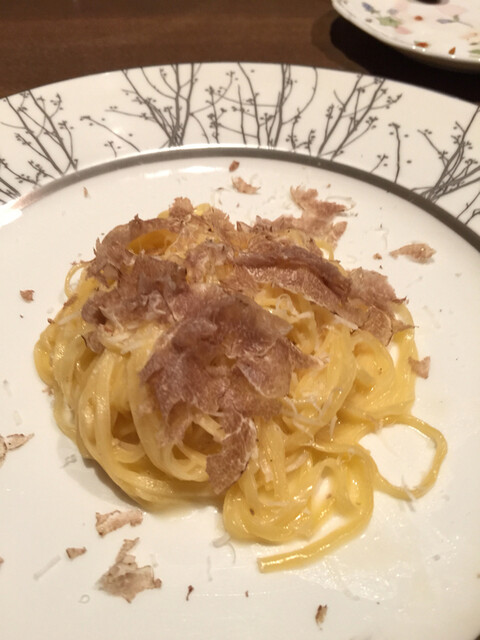 シンプルながらバターをからめてあるタヤリンをトリュフの薫りで食べる贅沢。