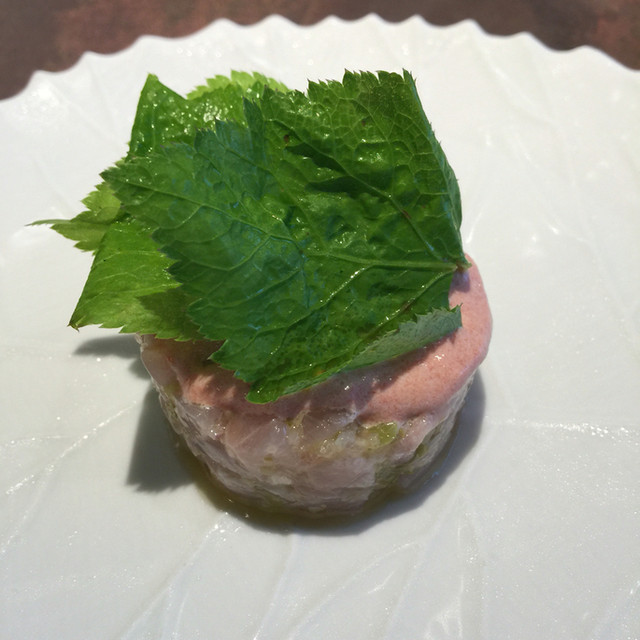 カワハギと甘海老のタルタルは旨味と甘みのハーモニー。その調和が程よい。