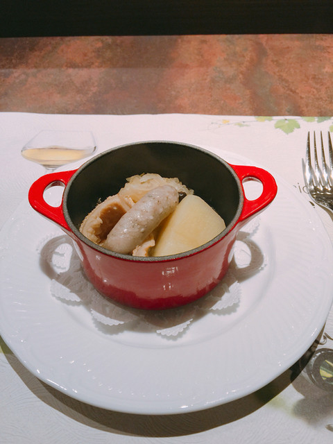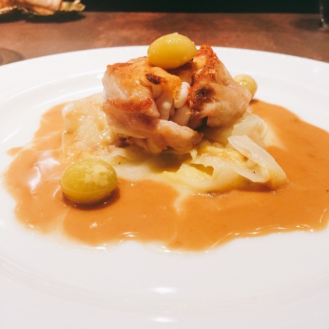 淡路産金目鯛と鱈の白子のポーピエットと白菜のブレゼ 2016-11