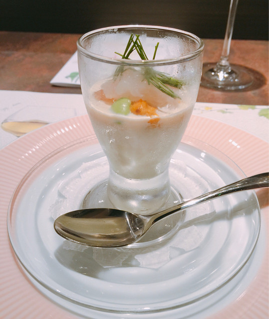 枝豆のブランマンジェ雲丹と白海老を添え 雲丹クリーム・ソース 2016-8