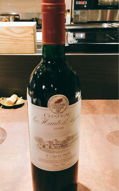 1990 CHAORS Chateau Les Haut d'Aglen これは素晴らしいカオール! 私がカオールのワインが好きなのを佐藤シェフは覚えていて用意してくれた 2016-11