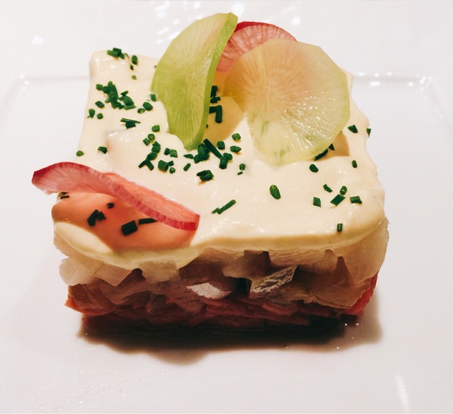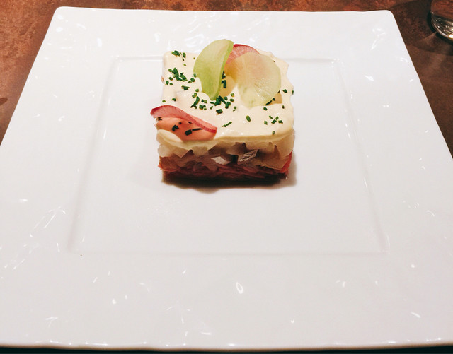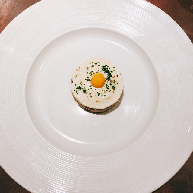 十勝自然飼育牛のフィレ肉と牡蠣のタルタル 根セロリと林檎のクリーム 絶品! 2016-11