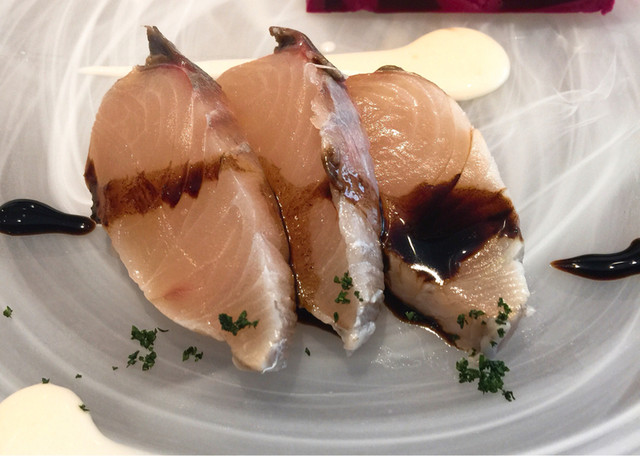 鰆は生で食べると柔らかく食感が悪いが、酢で〆たことにより食感が向上している。