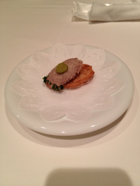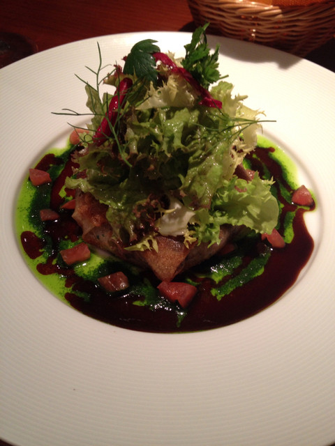 フォアグラと豚足のギャレット(里芋入り) パセリ風味のバルサミコソース 2014-12
