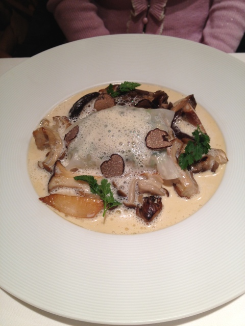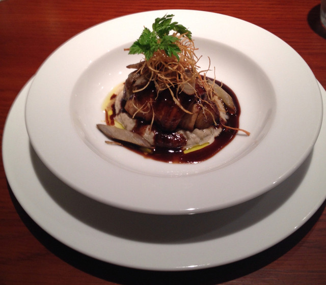 夜は前菜が「オマール海老と豚足の包み焼き」、メインが「牛テールの赤ワイン煮と根セロリのパルマンティエ」でした。両方共に美味しかったですよ。此方のディネは¥5,880のプリフィックスで、アントレ、プラ、デセールの構成です。前菜は9種類、メインは7種類、デザートは4種類から選びます。前菜、メイン、デザート、共ボリュームがかなりあるので、本当のフレンチを食べた気分になります。チマチマと色んな種類が出て来るのでは物足りない、一皿、一皿を十分食べて堪能したい方々に向いています。その意味でグルメよりグルマン向けのお店かもしねませんね。