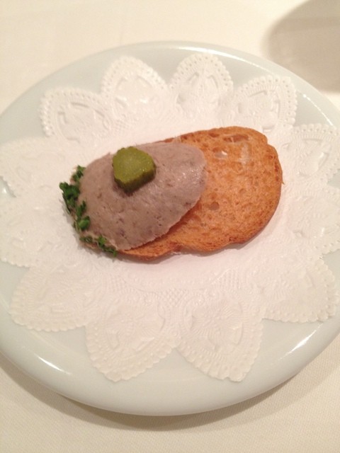 穴子のパン粉焼きと鶏白レバーのパテ添え (次男)