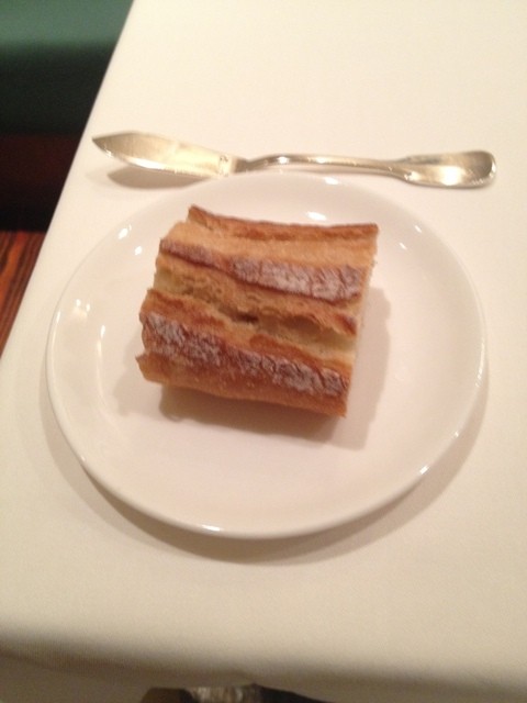 ご参考までディネのシステムを再度記しておきます。¥5,880のプリフィックスで、アントレ、プラ、デセールの構成です。前菜は9種類、メインは7種類、デザートは4種類から選びます。メニューは月毎に季節を取り入れ入れ替わります。前菜、メイン、デザート、共ボリュームがかなりあるので、女性には多過ぎると感じる方もいらっしゃると思いますし、逆に男性は満足出来ると思います。フランスで出るお料理の量は多いので、本場のフレンチを連想させます。