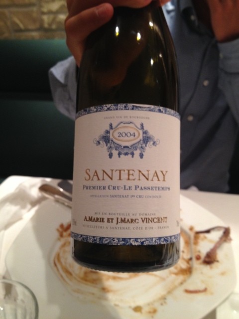 ワインはブルゴーニュの赤、Domaine Bernard Morey et Fils Santenay 1er Cru Passetemps SANTENAY 2004をこれも鳥山さんのお勧めで戴きました。サリューに来ると、ワインは頼んだお料理に併せ何時も鳥山さんにお任せです。昼でも家人とフルボトルを頼む事が多いのですが、昼、夜、シチュエーションに合わせ、手頃なものから、美味しいものまで選んでくれます。ここのワインは本当にリーズナブルな値段のものから揃っており、助かりますね。シャンパンとワインを飲んだのですが、家族4人だと丁度いい量ですね。当然ながら私が飲んでいる量が一番多いです(笑)。