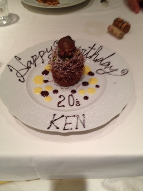 何時も思うのですが、森本シェフのお料理は美味しくて一皿の量がタップリあり、何で前菜+メイン+デザートで¥5,880なんでしょう。場所も恵比寿というか広尾に近いのに。本当に経営努力に頭が下がります。それに鳥山さんの笑顔と素晴らしい心地良いサービスが付いてくるのですからね。食後に森本シェフが次男のお祝いにテーブルに来て下さり、次男を中心に我々とトークタイムです。「何、彼女いないの?人生楽しくないでしょう」といじってくれました。森本さん、鳥山さん、次男の成人の誕生会。きっと次男は一生忘れないと思います。有難うございました。