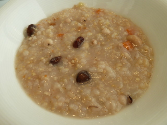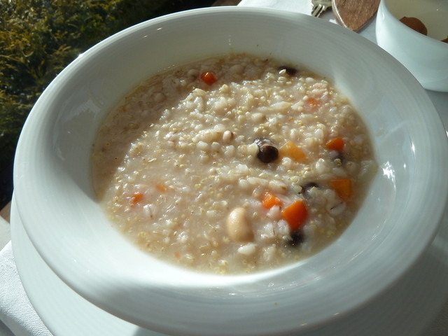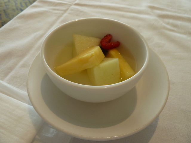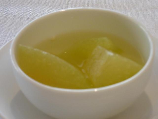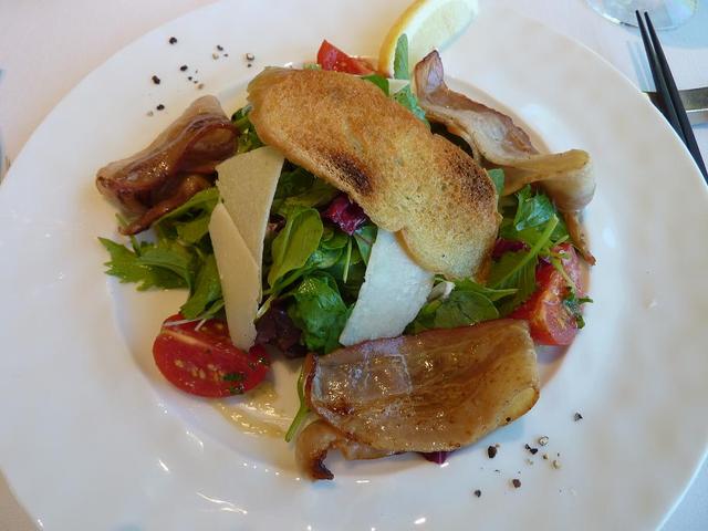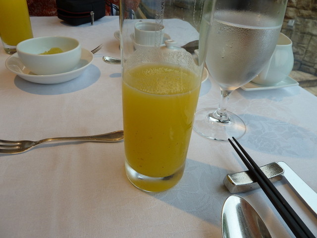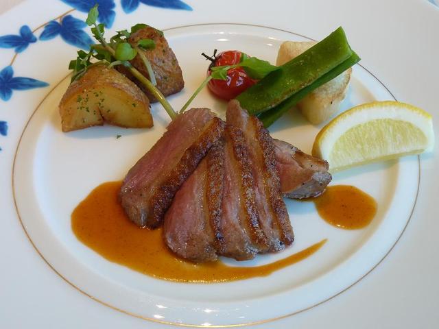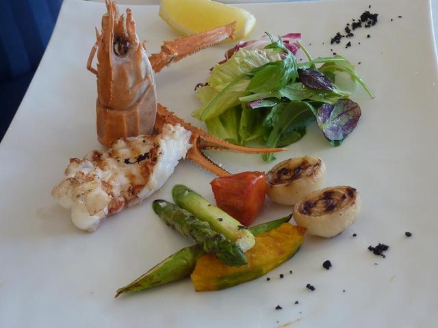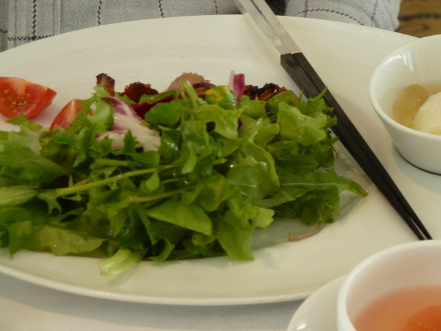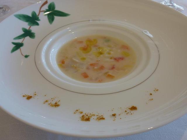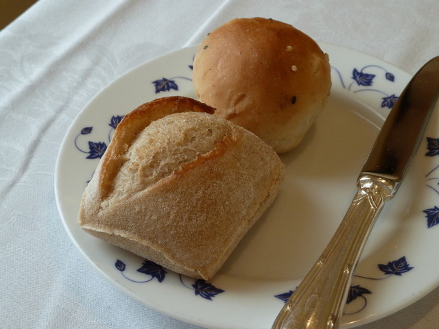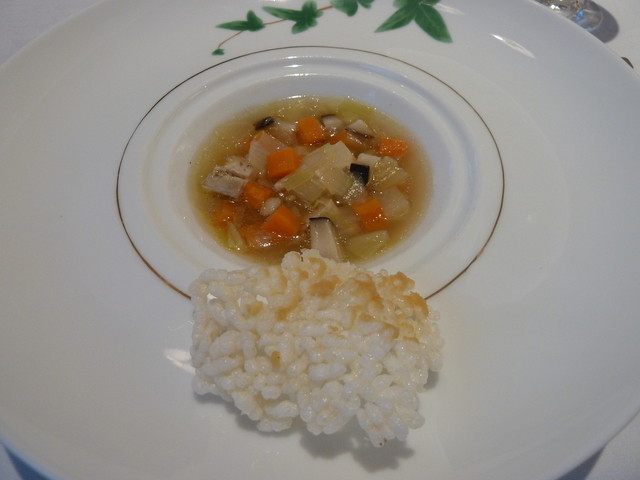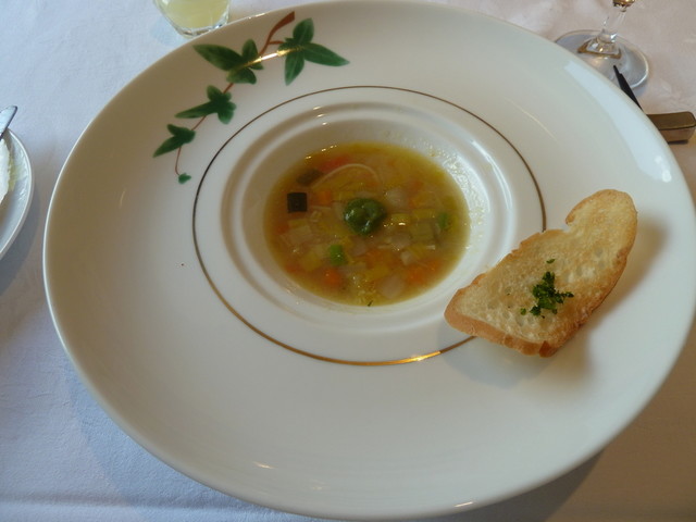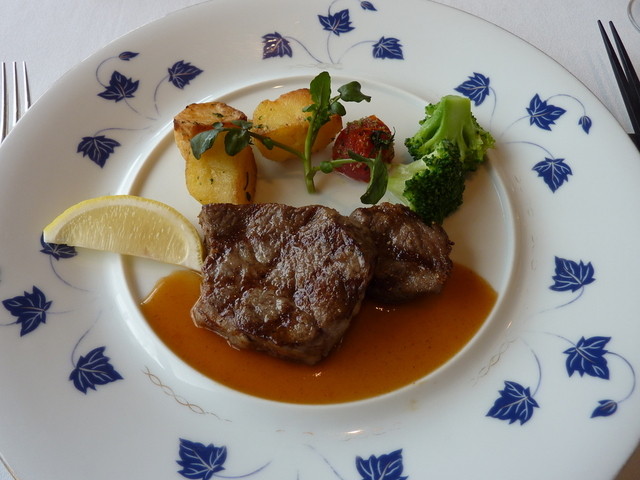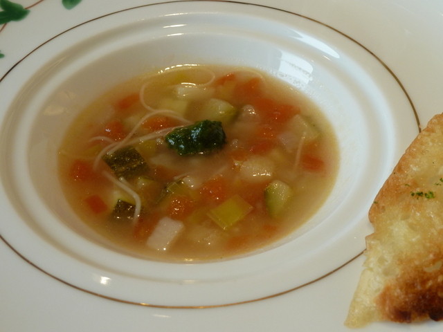 オニオングラタンスープは熱々の容器で供されますが、これがまた美味。かすかな苦みの中に優しいオニオンの甘味とチーズのとろみが広がります。浸してあるパンも本当に美味しくて、これは美味しいなぁとしばし感動に浸りました。