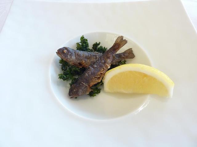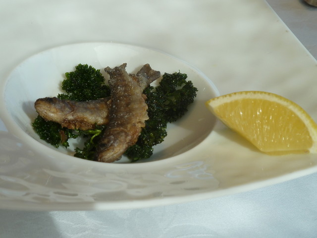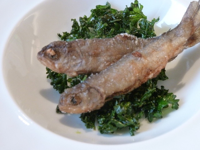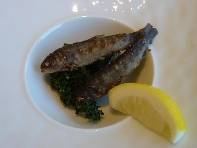 薪火焼きコースの突き出しのニジマスのから揚げ。