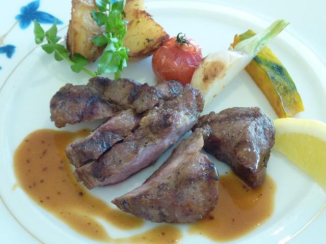 メインは更に盛り上がります。カミサンの国産豚のスペアリブ薪火焼きを少し頂きましたが、かすかなお味噌の香りがお肉を更に美味しくしてくれてカミサンはとても喜んで「やはりラ・フォーレは薪火焼きよね」とニコニコしていました。私は羊肉と野菜の煮込みでしたがとにかくボリューム満点。美味しいスープに羊肉と野菜がゴロゴロ。柔らかいお肉も綺麗なお野菜も美味です。備え付けの辛いペーストを入れるとピリ辛になって更に美味しくペロッと頂きました。残ったスープにクスクスを入れて頂くとこれもまた大変おつなお味。更にパンで拭き拭き最後まで美味しく頂きました。