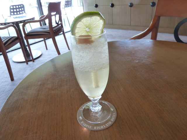 何十とお世話になっていますが、今回は半年ぶりにハイランドホテルに休みにきました。ホテルに着いた午後に、ラウンジで早速とても美味しい「山のかおり」というソーダをカミサンと頂きました。前回とても美味しいジンジャーエールを頂いたのですが、今回の「山のかおり」もフレッシュな苺ペーストにベリーとミントが添えてあるという豪華なソーダ。広いお庭を見ながらソーダをゆっくり味わうと至福の時を過ごせました。その後、温泉三昧で楽しんで、その日は就寝。ゆっくりと羽を伸ばしました。