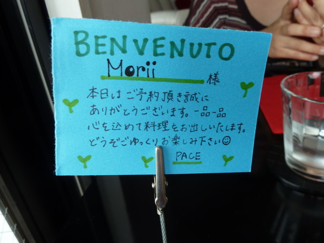 4年前にうかがってあまりの美味しさに感動していましたが、その後いつでも行けるということからか逆に足が遠のいておりました。今回はカミサンと美味しいものが解る友人夫妻と一緒に4人でうかがいました。間近の予約でしたが運よく席が取れ、ワクワクしながらカミサンの車でやってきました。天井の低いマンション下の狭い通路を通ると数台の駐車場。カミサンが四苦八苦で駐車してお店へ。洒落たデザインのマンションを見ながらお店の前に。丁度12時でしたが、お客さんが皆さんお待ちで、お店の方の案内でいっぺんで満席に。4年前と変わらず、お店からの招待状がテーブルにあるのも嬉しいですね。(^^)