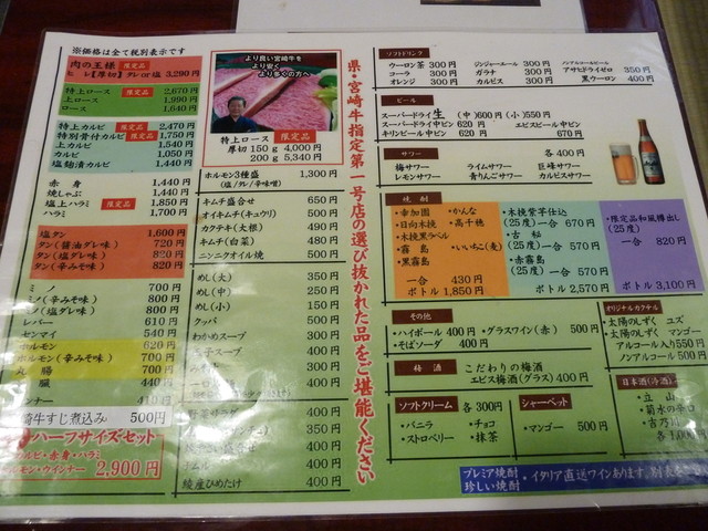 このお店は親戚の方々のおうちのそば。最後の夜は焼肉の幸加園で親族の方々と宴会です。こちらはかつて来たことがあって、その時は「焼きしゃぶ」のあまりの美味しさに絶句した覚えがあります。宮崎はやはりお肉はかかせませんね。今回は総勢10人。小さいお子様も喜んでいます。一番奥のお座敷に座ってまずは一杯。私はお酒が飲めないのでこちらでしか飲めないソフトドリンクの「スコール」を頂きました。