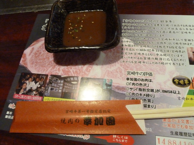 ここでもご馳走になってしまって申し訳ない感じですが、最後に店員さんに集合写真を撮って頂いてお開き。みんなで歩いて帰りました。途中で私とカミサンは皆さんとさよならしてホテルにかえりました。宮崎4日間最後にお肉は最高でした。幸加園はこれからも何度も来るでしょう。最高でした。どうも御馳走様でした。