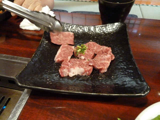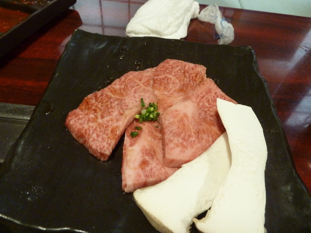 さてお肉を注文。分厚い「塩タン」更に「ハラミ」。人気No.1という「上カルビ」。そして野菜を注文。キムチも。私だけご飯の「小」。ご飯美味しいんですよね。美味しいお肉には美味しいご飯ですよ。もちろん感激の味「焼きしゃぶ」も注文しました。