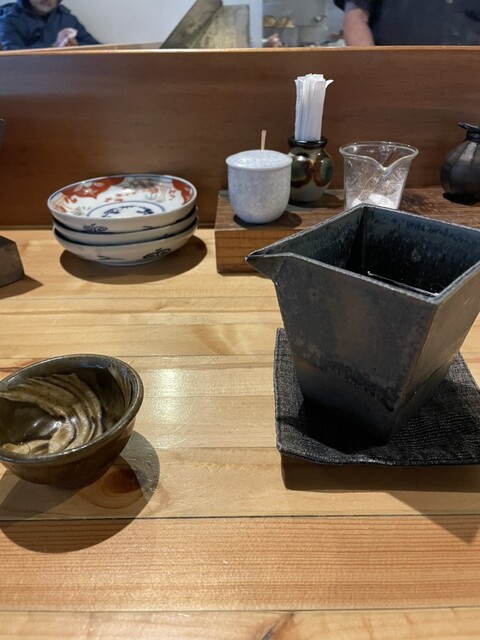 先にお蕎麦到着。キンキンに冷やしてあるのは店主が修業した喬楽亭の更に師匠筋の松翁からの系譜か。