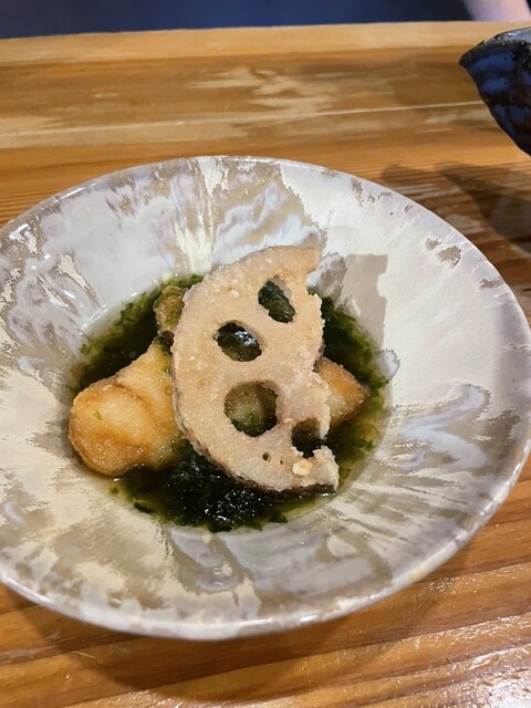 ・タラと蓮根の海苔あんかけ/車坂 山廃純米吟醸生酒