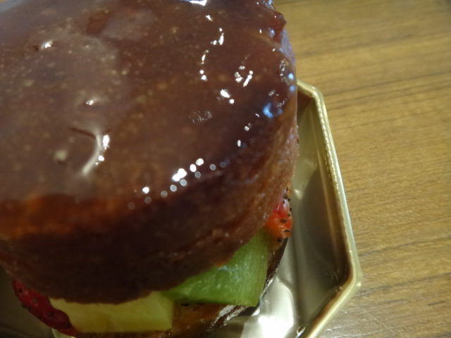 中に洋酒がきいたクリームが入っていました。全体に、しっとりな、タルトのようなスイーツに仕上がっておりました。