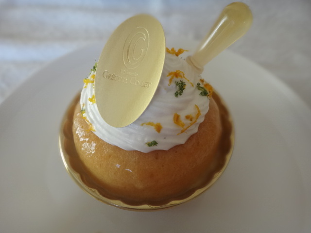 しっとりサヴァラン。お酒は控えめ。オレンジの爽やかな風味が特徴的。