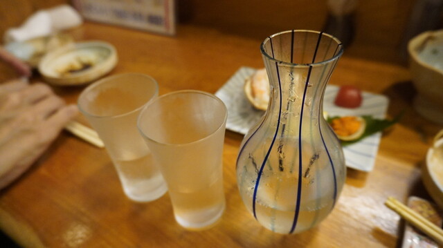 つけ場に二代目。カウンター奥に座り、先ずはお造り盛り合わせで、ビール一杯。