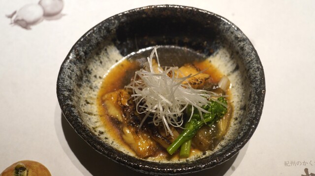 煮 物 =クエの煮焼きは、クエを焼いた後にに着けた一皿