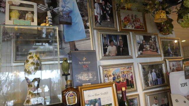 店内というか平屋の一軒家の中は造花と生花と、バイク、魚、絵画、写真など、お花畑状態です。