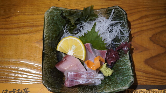 ここは駅と城の中間に位置しています。風情のある建物で、地元のお魚、お惣菜を堪能できます。
