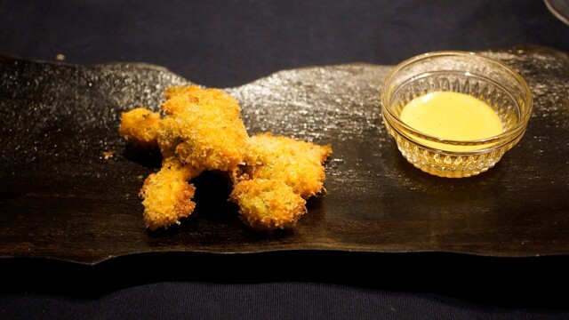 ⑤こしあぶらのフリット、黄身酢添え