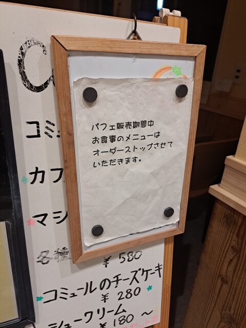 このような形態でコミュールさんで食事するのが最後になります。別れではなく、営業形態の変更で次回からは「ケーキ類のテイクアウト」作戦にワタシとしては移行するために、関係は引き続き継続されます。しばらく、こちらコミュールさんのレポートはテイクアウト中心のものになることをあらかじめご了承願います。
