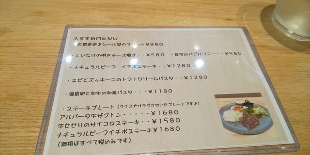 コミュールは3周年をむかえました。本日までがその記念企画、様々なイベントが開催されてました。メニューを探してみるとステーキのセットがありました。肉が食べたい…願いが叶いました。そしてワンプレートに様々なおかずが乗ります。