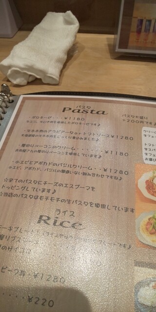 店主さんがInstagramにアップしていた最新パスタメニュー、これを紹介されました。すいません、私は事前確認してなかったけど、こちらをオーダーいたしました。店主さんが試作で苦心されていたとお話しされていて、かなり期待できる逸品ともいえます。