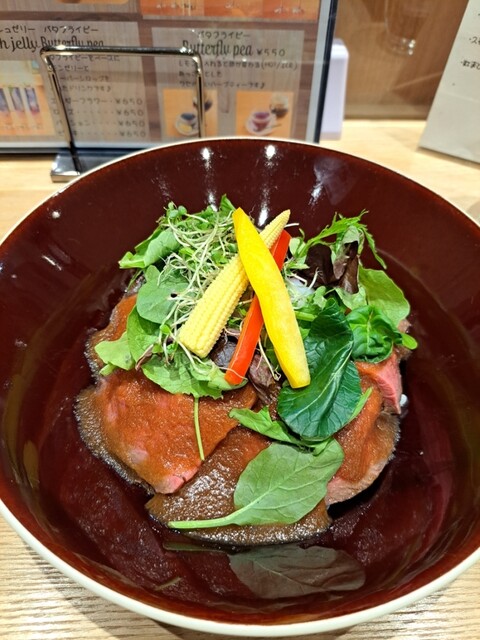 パスタから迷い、結局はローストビーフ丼を選びました。ご飯は大盛り無料です。昔にこちらでローストビーフ丼食べたような、そんな気もしました。しかしながら初めてかも?と感じながらもいただくことにしました。