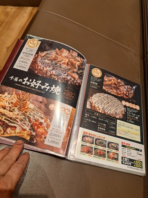千房アプリのクーポンを使いながら、メニューを見て今食べてみたいものをチョイスしました。チャレンジしてみることは大事、ポテトサラダの美味しさ、砂ずりのこりっといい食感、海鮮お好み焼きの斬新さ、は良いものでした。イオンモールアプリの100円割引きクーポンとの併用はできず断念しましたが、予約して来た甲斐があります。いつもありがとうございます、ごちそうさまでした。