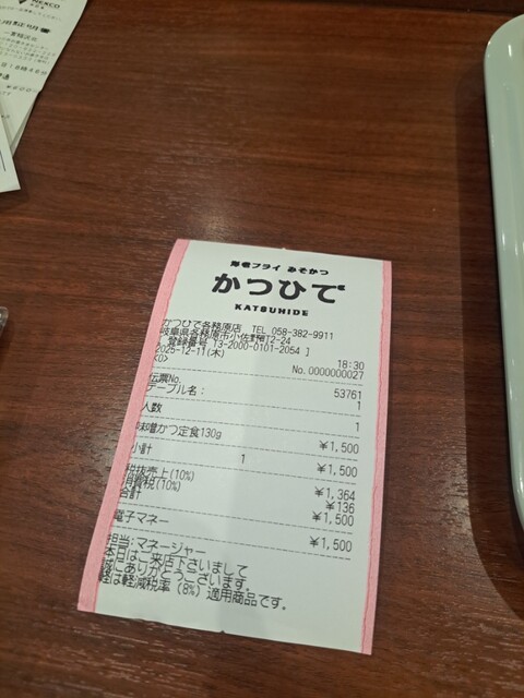 味噌かつ定食(130グラム、豚汁、税込み1500円)